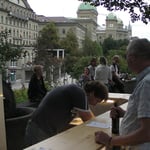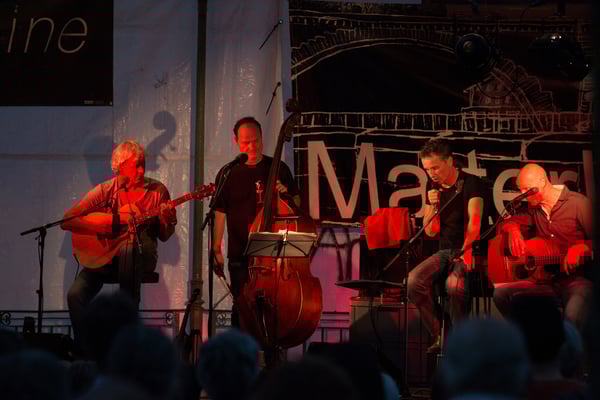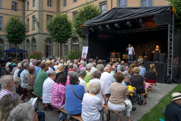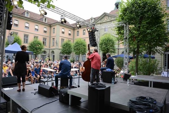 Wir sagen Danke für einen tollen Abend am 4. August. Eine stimmige Sache war's im Innenhof des Burgerspittel/Generationenhaus Bern: Christoph Simon hat mit seinen Texten und seinem Auftritt das Publikum - der Ausdruck ist durchaus gerechtfertigt - gefesselt. Die Mannen von Troubas Kater haben druckvoll und tiefschürfend für Stimmung gesorgt. Und Bernhart Matter-Spezialist Heiner Halder hat humorvoll unseren Horizont erweitert. Und dann das Wetterglück: Ein Sommerabend, wie man ihn sich wünscht: Nicht zu warm, nicht zu frisch, genau richtig zum lange sitzen oder stehen bleiben.