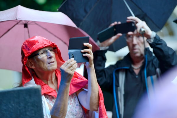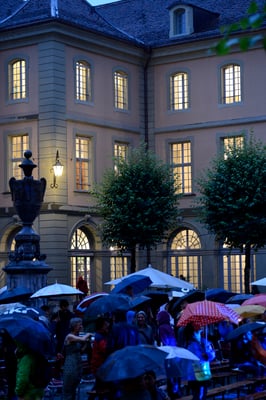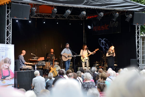 Auch bei Regen eine wunderschöne Kulisse: Der Burgerspittel bzw. das Generationenhaus. Schon beim zweiten Set fielen die ersten Tropfen - doch das Publikum blieb standhaft. Erst als der Regen heftig wurde, mussten wir uns in die Kapelle zurück ziehen.