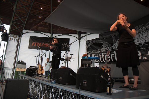 F Das ManiMatterFestival wird seit Jahren auch von zahlreichen gehörlosen Personen besucht. Der Verein MUX (Musik und Gebärdensprache) übersetzt den Konzertabend wiederum in Gebärdensprache. www.mux3.ch