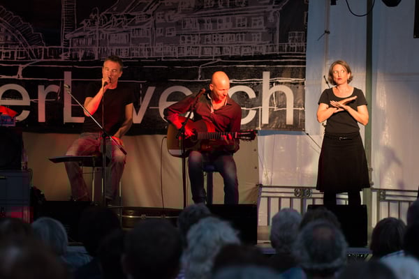 Das Publikum war super - ganz im Gegensatz zum Wetter: Das war richtig mies. Trotzdem war das 11. Mani Matter Festival ein richtig schönes Fest. Hunderte haben sich an den Künstlern Trummer, Jan Repka aus Tschechien, Manuel Stahlberger, Knäck und MatterLive erfreut. Der neue Austragungsort Burgerspittel/Generationenhaus ist perfekt für den Mani Matter-Geburtstagsabend. Auf der kleinen Schanze wären wir vermutlich weggeweht worden. Und der Schlussgig in der Kapelle, wohin wir uns glücklicherweise vor dem heftigen Regen in Schutz bringen konnten, was ziemlich intensiv. Grosses Merci an alle Beteiligten! Bildergalerie weiter unten.